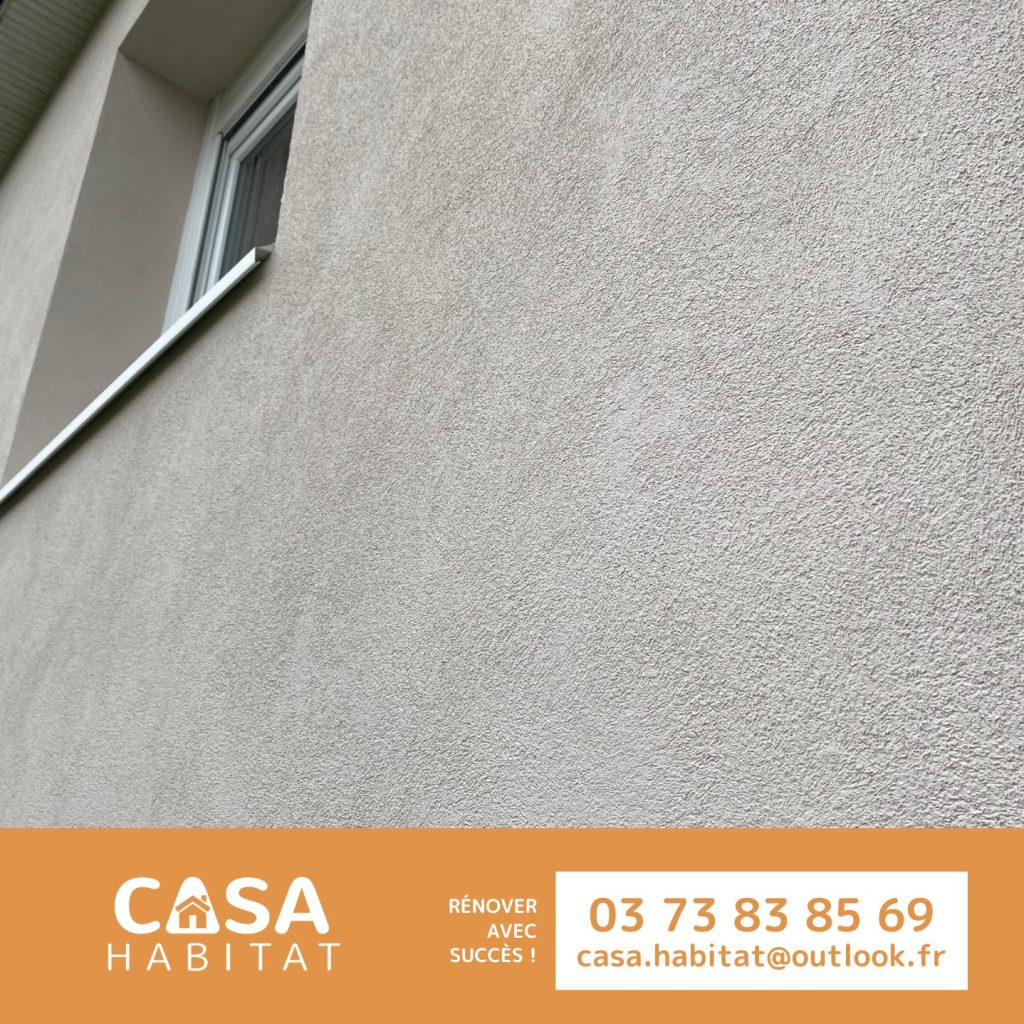 Pour la touche finale, un enduit grésé a été appliqué. Ce choix permet à la façade de conserver un aspect propre, soigné et contemporain, tout en offrant une excellente résistance aux chocs et aux salissures.