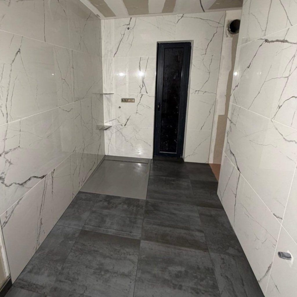 On part ici sur un projet de construction et de personnalisation totale d’une salle de bain. Tout est pensé et réalisé sur mesure, en partant d’un espace brut pour créer un sol parfaitement préparé et adapté aux futurs aménagements.