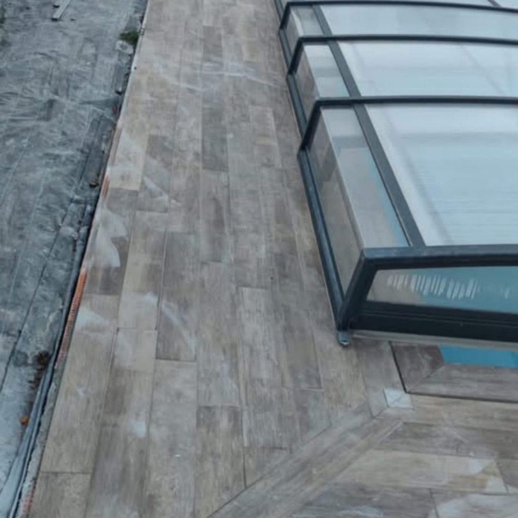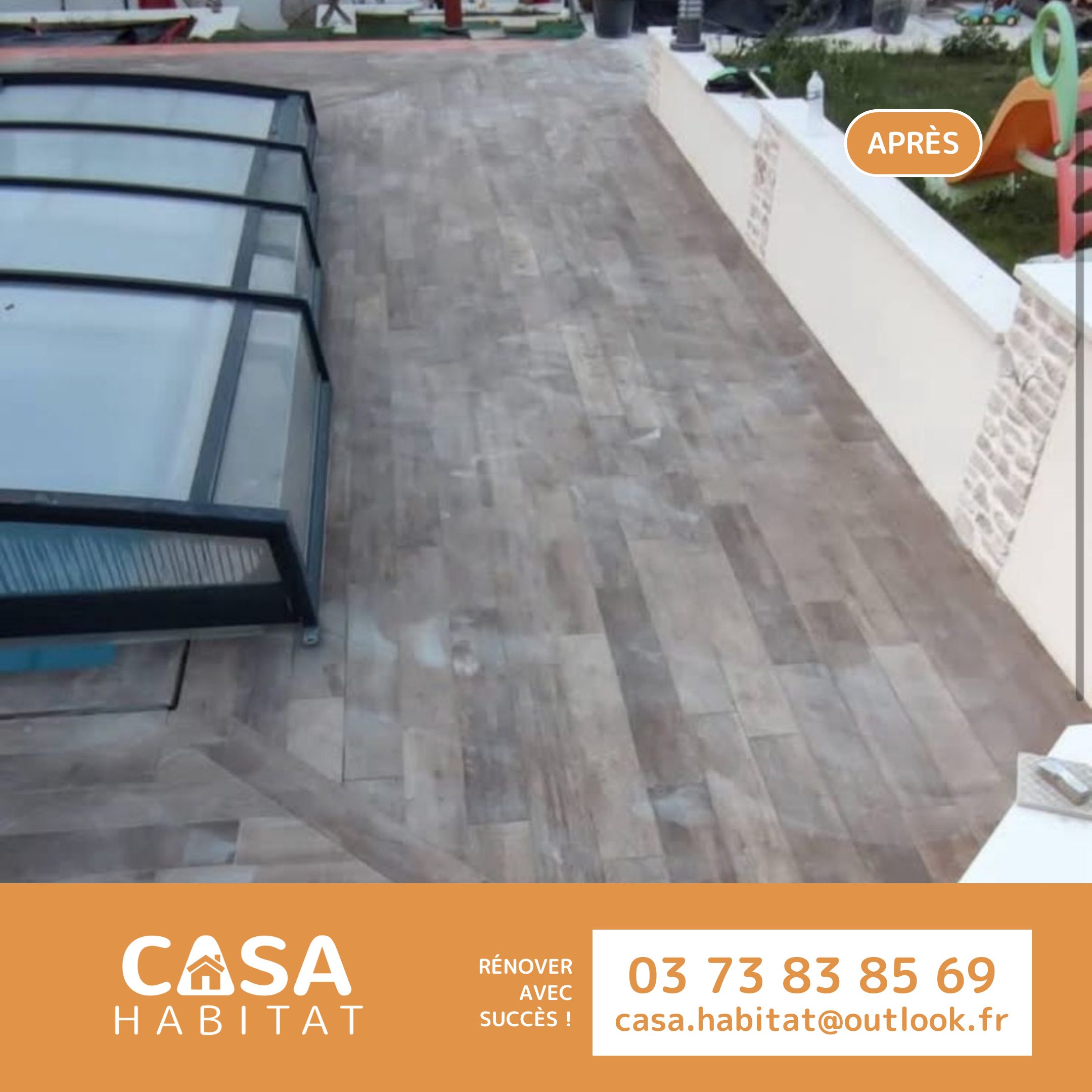 Ce choix de revêtement permet de conserver l’aspect chaleureux du bois tout en bénéficiant de la résistance et de la facilité d’entretien du carrelage, idéal en extérieur.